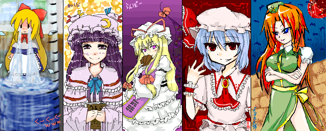 くーくーくーさん…上海-涙、自分…パチェ-満面の笑み、らんぽーさん…ゆかりん-クール、花鈴さん…レミリア-悪い笑み、ボックス太郎さん…めーりん-カリスマ、です。なんという紅魔妖々夢無双。