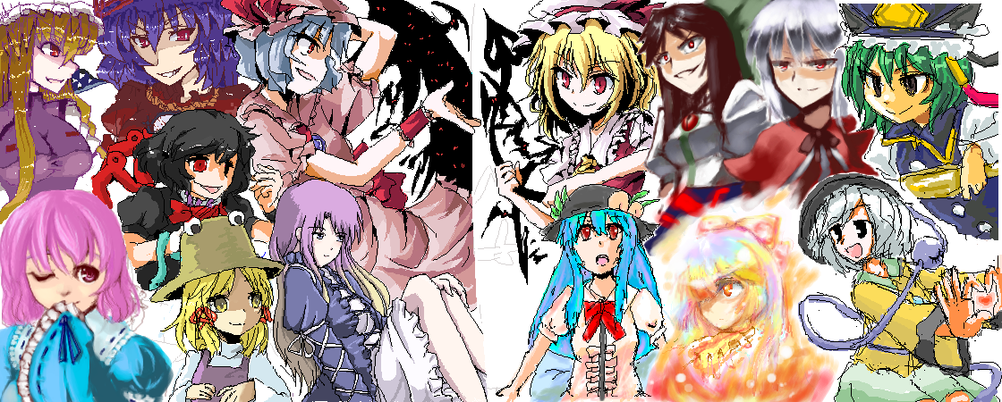 もずぐずさんのとこで合作させていただいた絵茶。お題が6ボス+EXボス連合対決風集合絵というカオスな感じ。いやー壮観壮観。